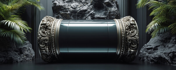 Futuristic Ornate Capsule with Classical Elements in Jungle Setting – Sci-Fi Meets Ancient Royal Design